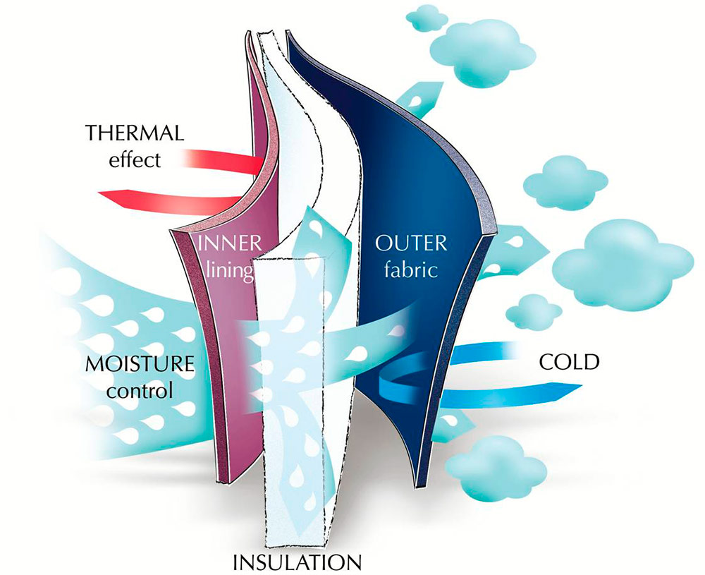 Vous pouvez laver les vêtements avec du Thinsulate à la maison, il ne se déforme pas et sèche rapidement.Le matériau est respectueux de l'environnement et hypoallergénique. Son principal inconvénient est son coût élevé et peut également accumuler de l'électricité statique.