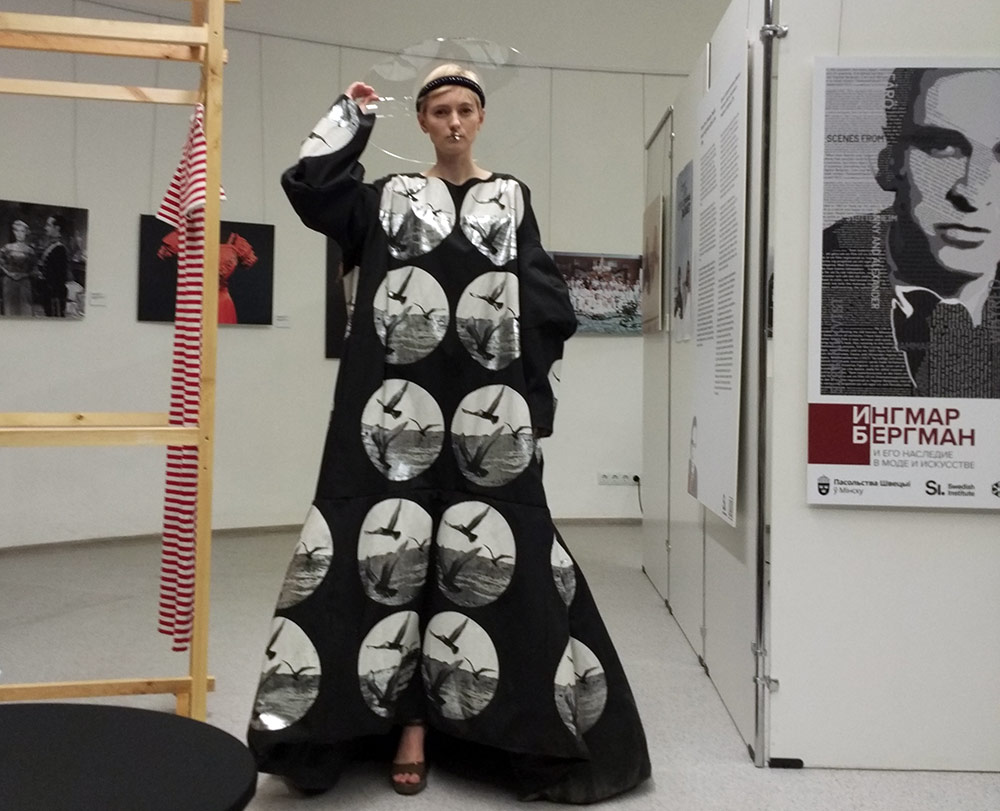 L'ambassadrice de Suède en Biélorussie Christina Johannesson à l'ouverture de l'expositionEn l'honneur du centenaire de Bergman, une dizaine de pays ont accueilli l'exposition « Ingmar Bergman et son héritage dans la mode et l'art », organisée par l'Institut suédois. De fin novembre à mi-décembre, cette exposition se tiendra dans la ville de Minsk (Biélorussie). Chaque pays a ses propres caractéristiques - les designers et photographes locaux, par exemple, peuvent créer leurs œuvres sur la base du travail de Bergman.
