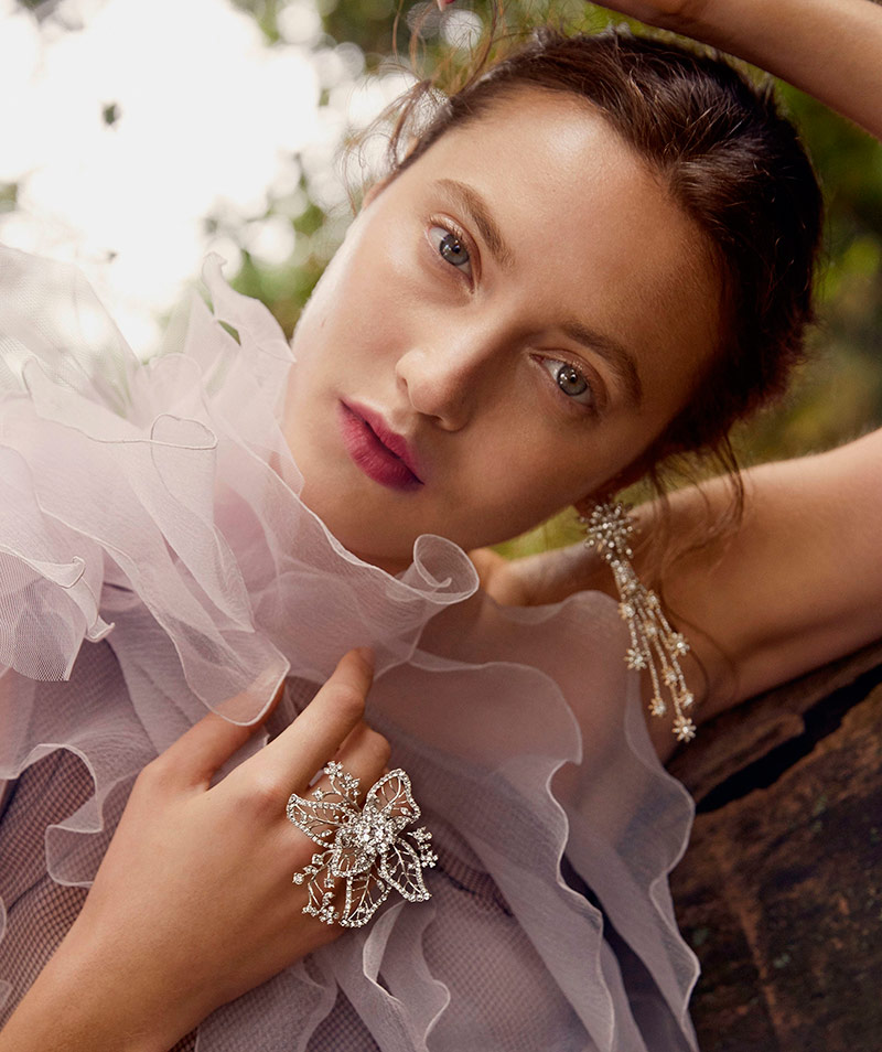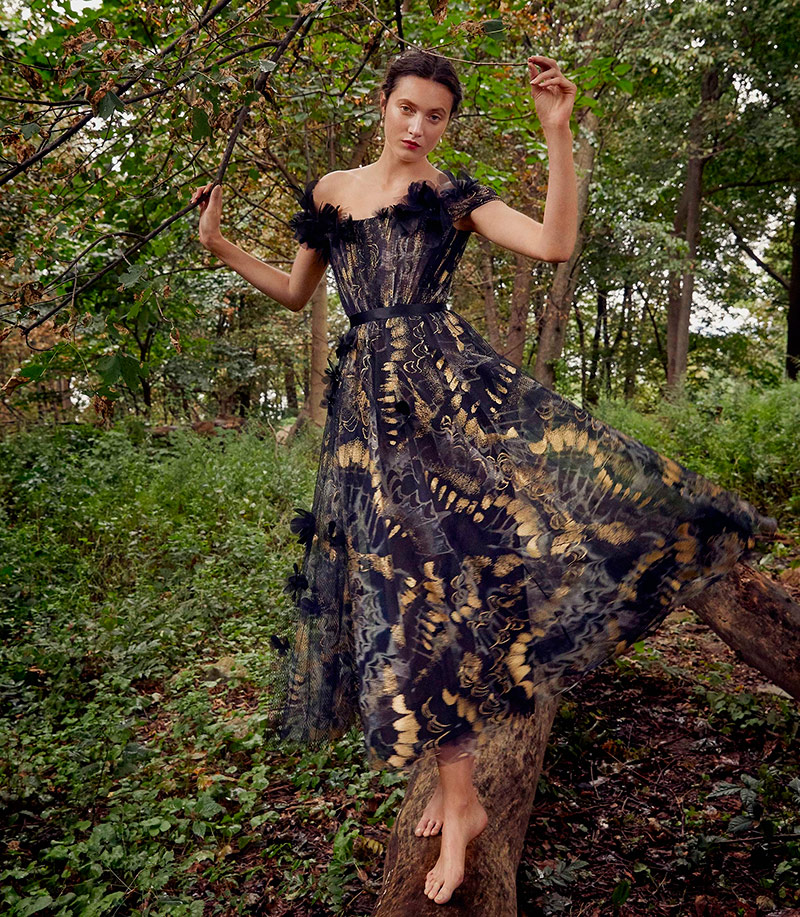 La nouvelle collection printemps-été 2026 est présentée sur fond de forêt, ce qui rend les images des modèles encore plus belles et fabuleuses. Les paysages forestiers évoquent des pensées de fées nymphes, de belles au bois dormant ou de princesses de la Renaissance.