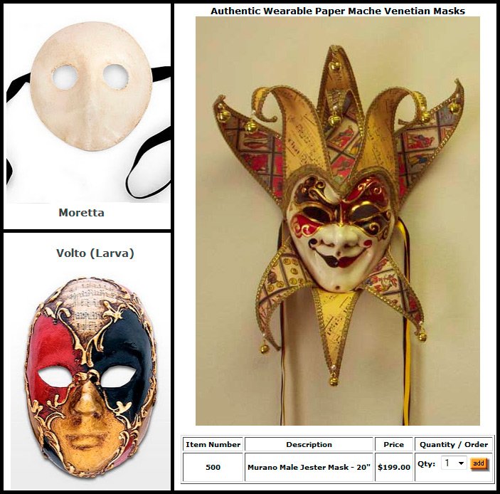 C'est l'histoire de l'origine des masques de carnaval vénitiens, qui peuvent être achetés à Venise ou dans des magasins en ligne.
