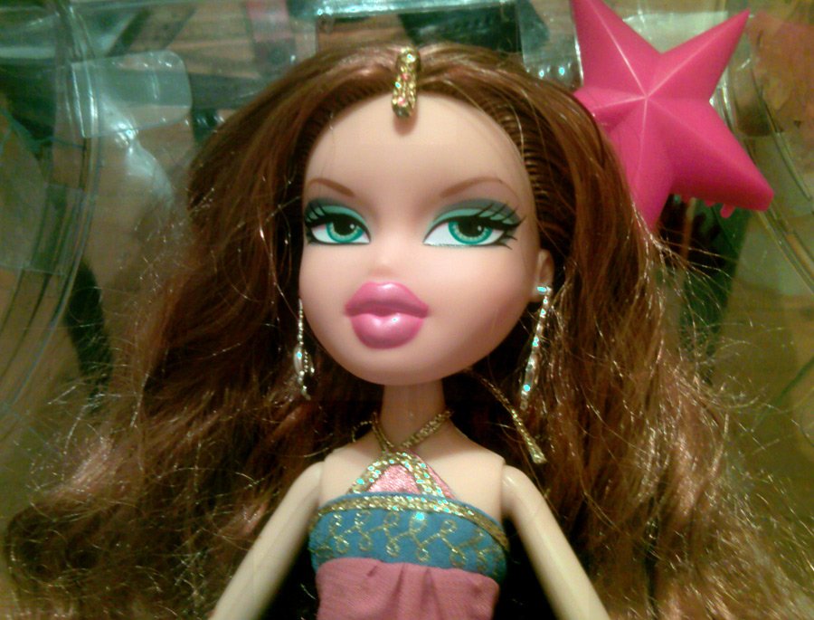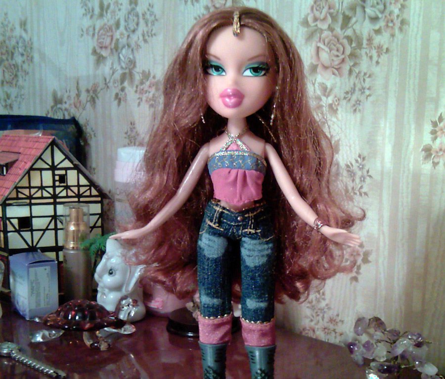 Par rapport à la Barbie standard, elles avaient une très grosse tête, mais je me suis rendu compte que je n'avais jamais vu de poupées plus intéressantes. Après tout, une poupée n'a pas besoin d'être une copie exacte d'une personne, dans l'enfance, c'est la tête et les cheveux de la poupée qui attirent le plus l'enfant, et Bratz en avait en abondance - cheveux sous le genou, beaux yeux orientaux, Des lèvres enfantines et capricieuses et une expression sournoise sur le visage ? ... Et leurs tenues pouvaient rivaliser avec les plus beaux vêtements pour Barbie : des travaux miniatures, presque des bijoux, comme les vrais, des jeans, des hauts et des t-shirts, des vestes laquées chics avec des fermetures éclair et des bottes hautes - tout est si réaliste qu'il était difficile à croire qu'il a été fait spécialement pour les poupées. J'ai soudain pensé que j'avais beaucoup de chance de pouvoir maintenant admirer calmement toute cette splendeur - après tout, dans mon enfance, il n'y avait rien de tel, et j'ai acquis beauté Bratz d'une série orientale plutôt rare - Magic of the Djinn, Meighan.