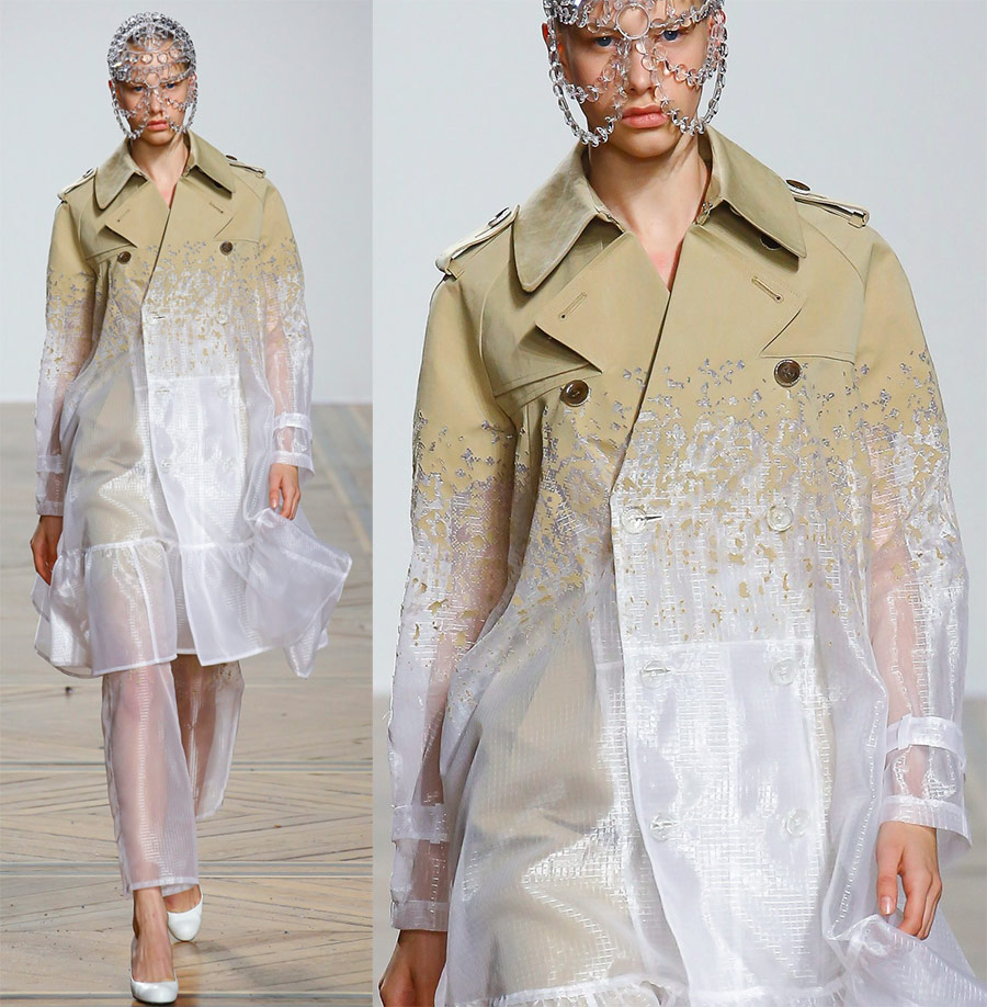 Dans la nouvelle saison printemps-été 2026, le créateur propose à nouveau son fantasmes sur le réel et l'irréel... Les nouveaux modèles combinent un flair futuriste avec un fort accent sur le décor. Les robes féminines en tissu transparent étaient ornées de centaines de boutons, de boules et de rivets, qui changeaient de couleur au fur et à mesure que les filles bougeaient, et les vestes passaient progressivement du denim ou de la gabardine aux formes trapézoïdales en polyester transparent.