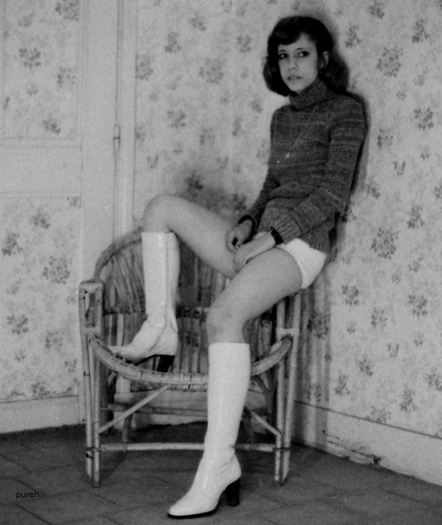Sur certaines photos, vous pouvez voir des bottes avec un short. Ces dernières années, les cuissardes et les cuissardes ont été au sommet de la popularité, grâce à quoi les looks vintage avec les cuissardes sont très modernes. En plus des bottes hautes, le plastique était pertinent à l'époque, des vêtements et des bijoux en étaient fabriqués. Maintenant que le PVC est à nouveau à la mode, certains médias arrivent à le qualifier de nouveau matériau moderne, c'est très drôle.