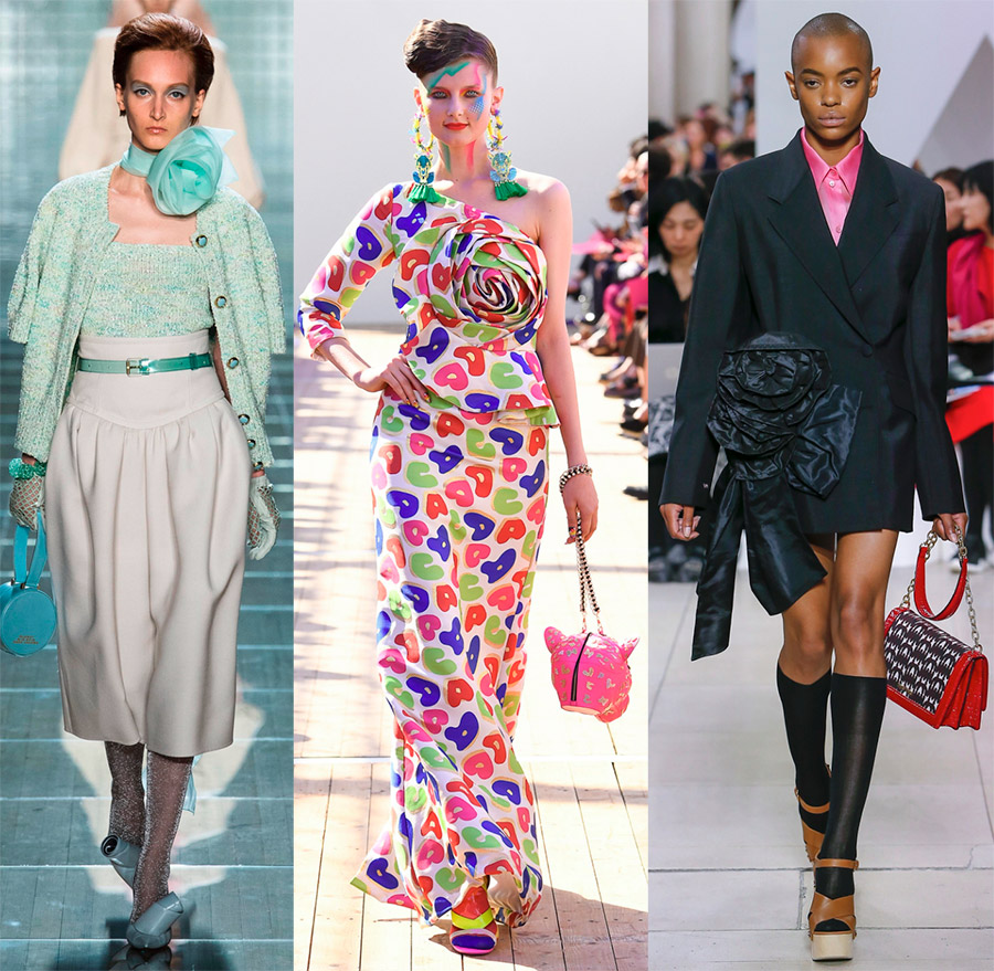 Balmain, Tom Ford, Jill Stuart 2. D'énormes roses et nœuds en tissu. Roses et nœuds sur les robes et les costumes. Au lieu d'un foulard, d'un foulard ou de bijoux, vous pouvez décorer votre tenue avec une énorme rose ou un nœud en tissu. Voyez comment les designers Marc Jacobs, Miu Miu, Manish Arora l'ont fait.