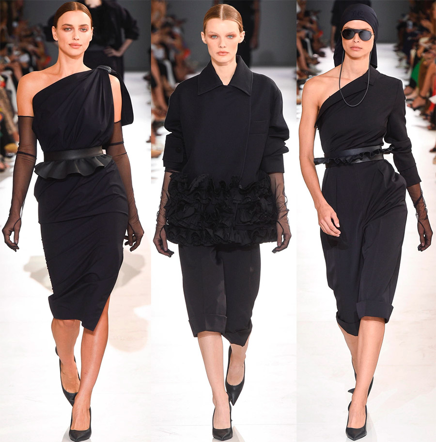 Dans le même temps, toutes les formes de modèles sont créées dans le style des classiques modernes. La collection est conçue pour une femme forte et confiante qui vit et appartient au monde des affaires, où la détermination, la fermeté et parfois l'inflexibilité sont exigées d'elle. Et ce sont, comme il est clair, les qualités d'un guerrier. Avec toutes ces épithètes, les modèles de la nouvelle collection sont consonants, où l'on peut voir des ceintures et des ceintures larges sur l'épaule, des bandanas et des épaules larges, soulignant la belligérance.