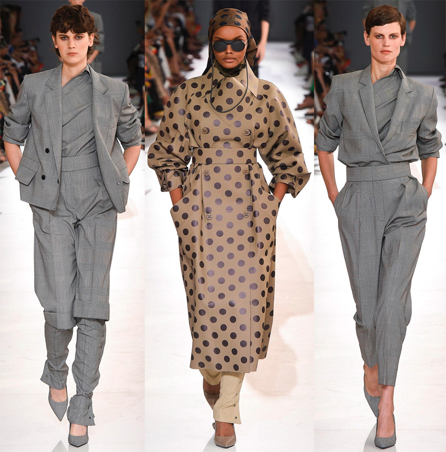 Max Mara est l'une des marques qui sait être le fief de l'élégance classique et s'adapter à son temps. Faites attention au nombre de tendances de mode importantes impliquées dans la nouvelle collection. Par exemple, l'asymétrie et la superposition, les imprimés populaires en vinyle et à pois, une palette à la mode, bien qu'ici la marque ait en fait utilisé des teintes emblématiques pour elle et qui ont toujours été utilisées, indépendamment du temps et de la mode.