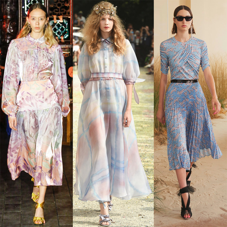 Des fleurs de différentes variétés et tailles, soigneusement posées à la surface du tissu ou dispersées de manière chaotique, semblent voler quelque part et tomber sous la pluie, transformant les filles en les mêmes fleurs. Des robes aux imprimés fleuris, elles sont incontournables. Il semble que dans certaines collections, les filles aient été bombardées de fleurs.