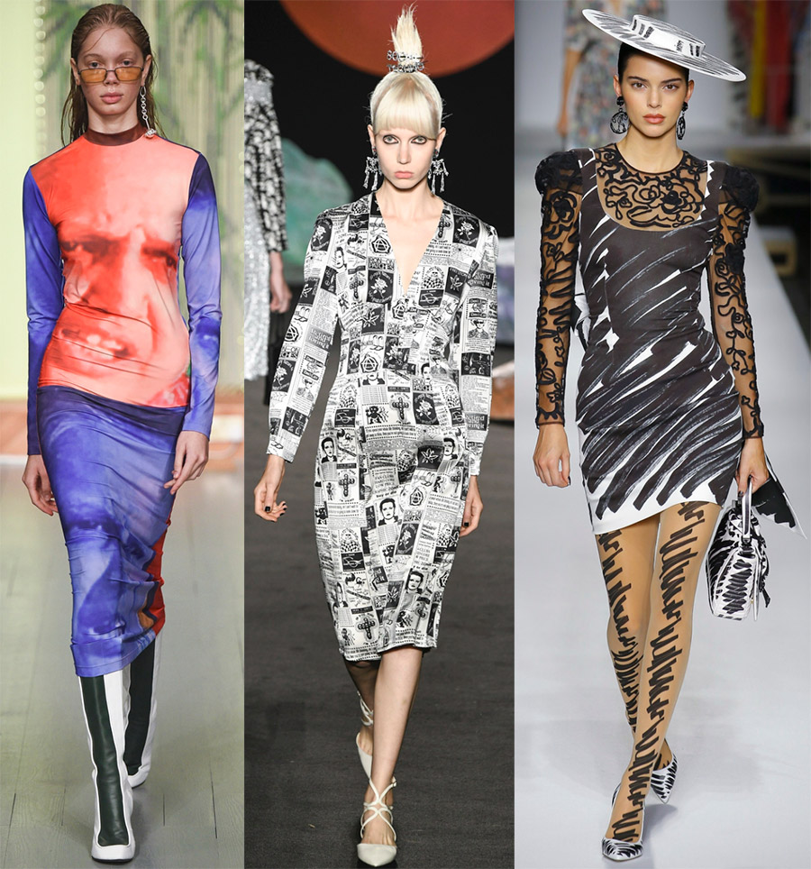 Sur les robes, vous pouvez voir des publicités, voir des bandes dessinées, des titres et des articles de journaux, ou même des croquis d'impressions lors de voyages, des monuments et des structures architecturaux, des portraits d'idoles, ou vous pouvez simplement prendre un stylo-feutre et peindre votre robe préférée de la saison dernière.