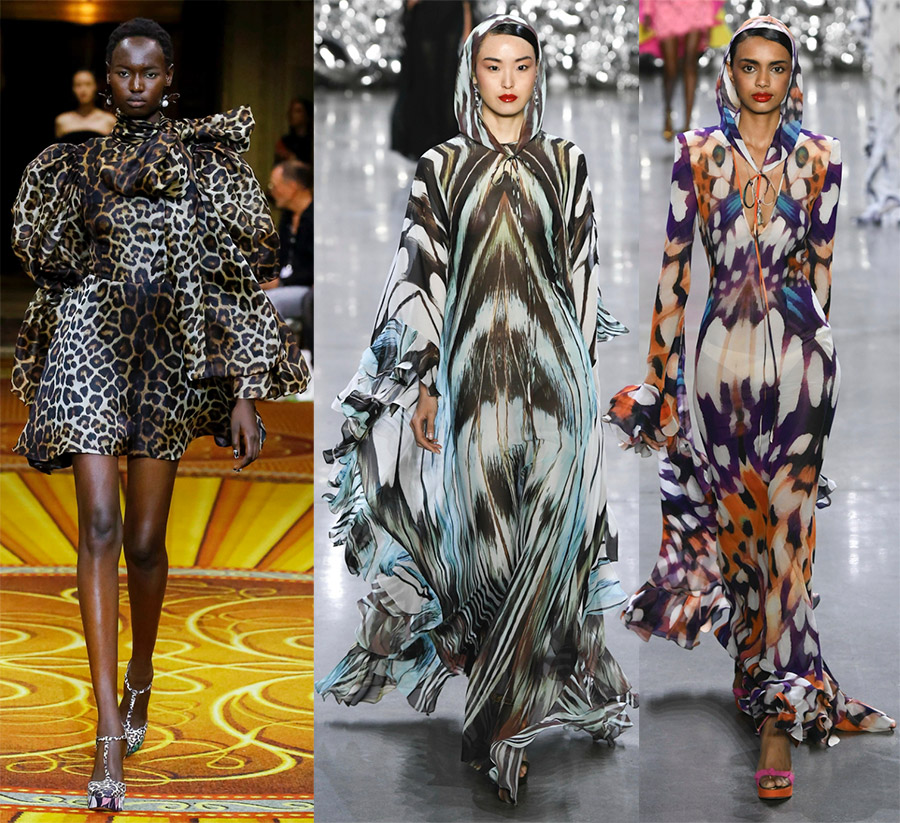 Tissus légers et plastiques, transparents et translucides, ajourés et scintillants sont mis en avant. La soie, la mousseline, la dentelle, le satin, l'organza, la mousseline émerveillent d'une beauté et d'une perfection exquises...