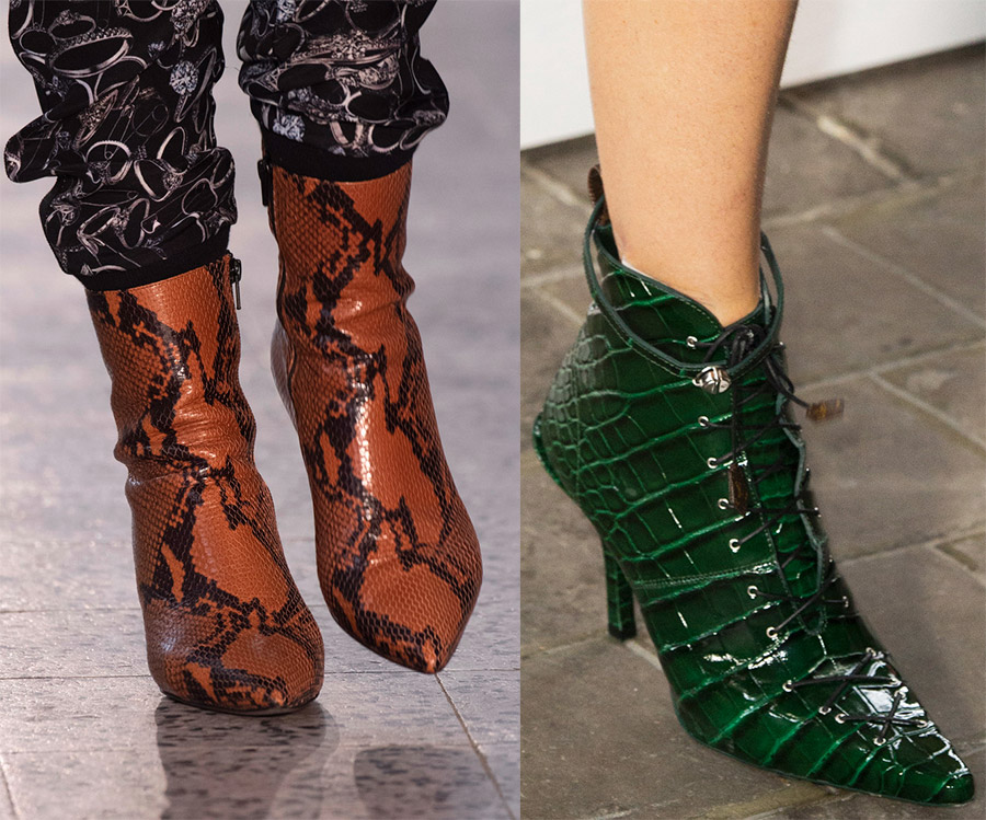 Les bottines d'une marque bien connue, cousues en véritable cuir de python ou de crocodile, témoignent toujours du succès et de l'amour du luxe.