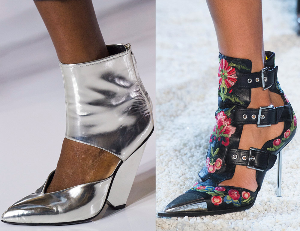 Balmain, Alexander McQueenDans certains cas, les chaussures prennent des formes si ouvertes qu'elles ressemblent davantage à des sandales, mais présentent en même temps les caractéristiques inhérentes aux bottines. De tels couples peuvent sembler très impressionnants, mais ils ne sont pas faciles à intégrer dans une image sans une garde-robe riche, une expérience et une silhouette idéale.