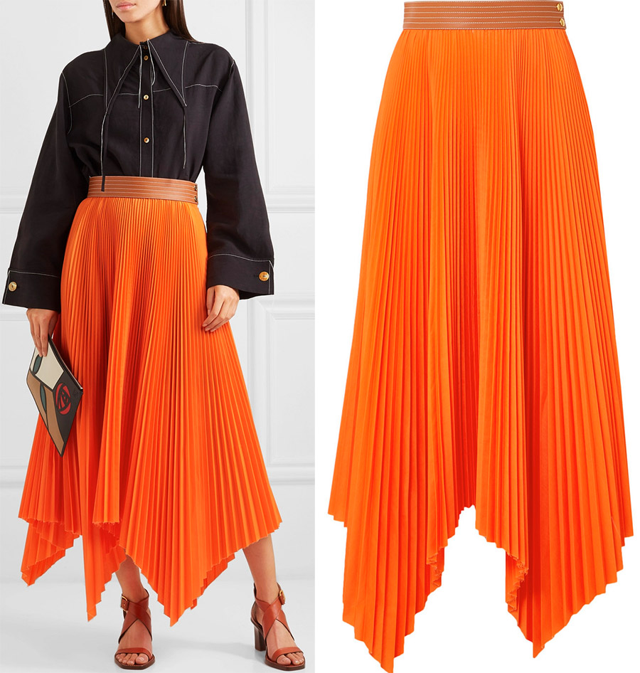 Le plissage et l'asymétrie fonctionnent très bien ensemble, ils se complètent même. Vous avez juste à essayer de trouver de telles jupes.