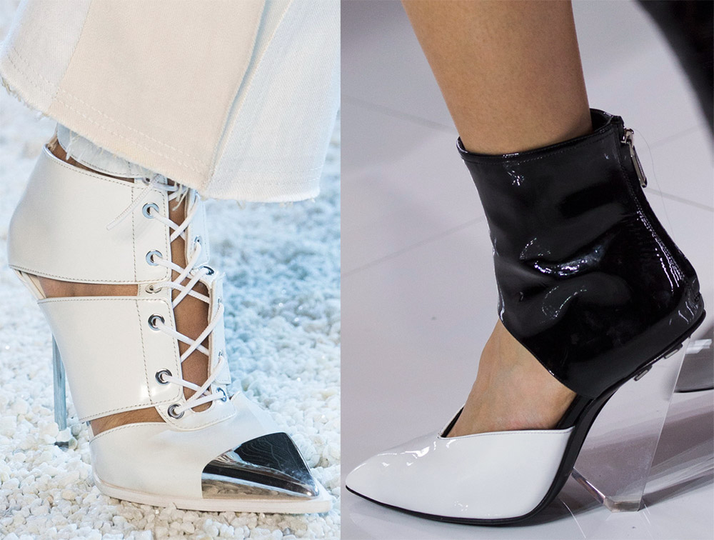 Christian Louboutin propose des modèles tissés, Gianvito Rossi propose des chaussures à lacets très légères, et Alexander Mcqueen propose des bottines gothiques luxueuses. La saison chaude ouvre plus d'opportunités pour expérimenter la conception de chaussures, tous les matériaux, technologies et décors disponibles peuvent être autorisés.