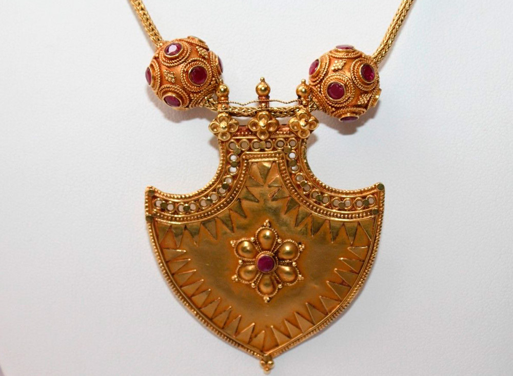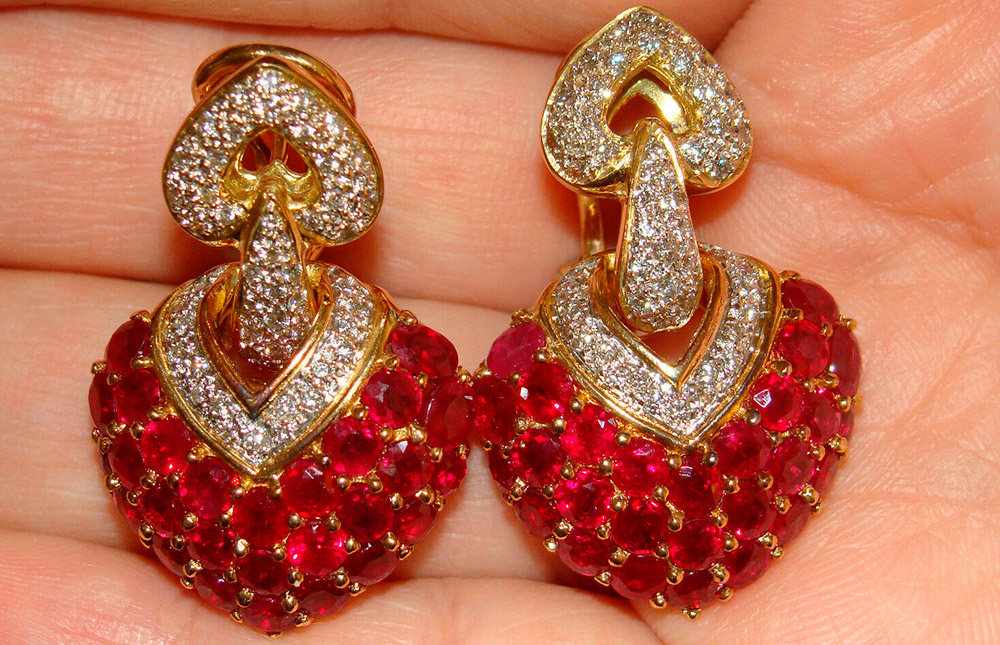 des rubis ornent le collier, bagues, bagues, bracelets, boucles d'oreilles et même montres. Les rubis dans les bijoux sont souvent combinés avec des diamants et l'or leur sert de cadre.