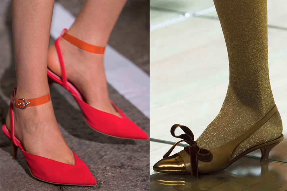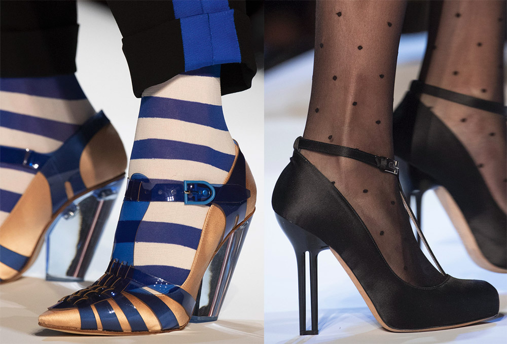 Les escarpins sont toujours élégants, stylés et à la mode. Dans chacun de ces modèles, de nombreuses tendances actuelles peuvent être tracées. Par exemple, une rayure bicolore pour Dries Van Noten, un dégradé pour Francesca Liberatore, des couleurs légèrement barbouillées pour