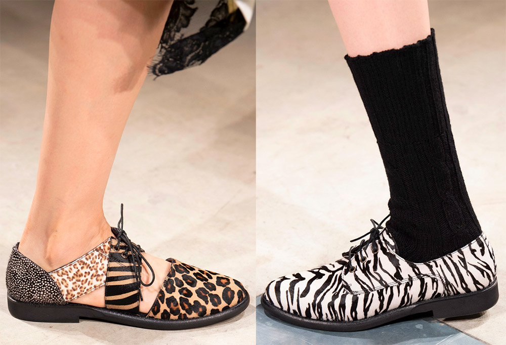 Mais il convient de noter l'imprimé animal qui, dans tous les types de chaussures, se distingue nettement du fond des autres, indiquant clairement le courage et la confiance de son propriétaire.