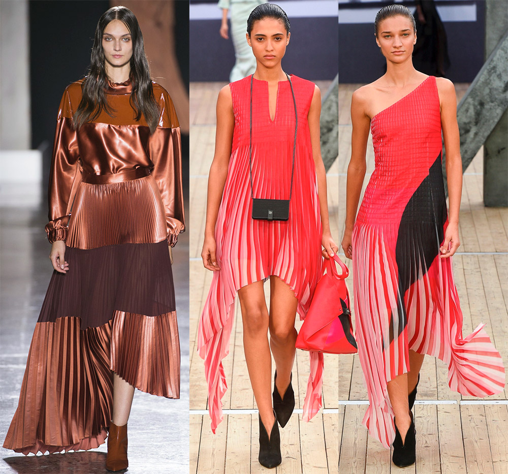 Givenchy, Valentino, GiadaEn plus des robes et des jupes, vous pouvez créer un ensemble de hauts et pantalons plissés, vestes, chemisiers et tuniques. Dans les collections récentes, on trouve souvent des superpositions, constituées de plusieurs jupes ou d'une combinaison de robes et de pantalons, de robes et de jupes. Et tout cela est plissé.