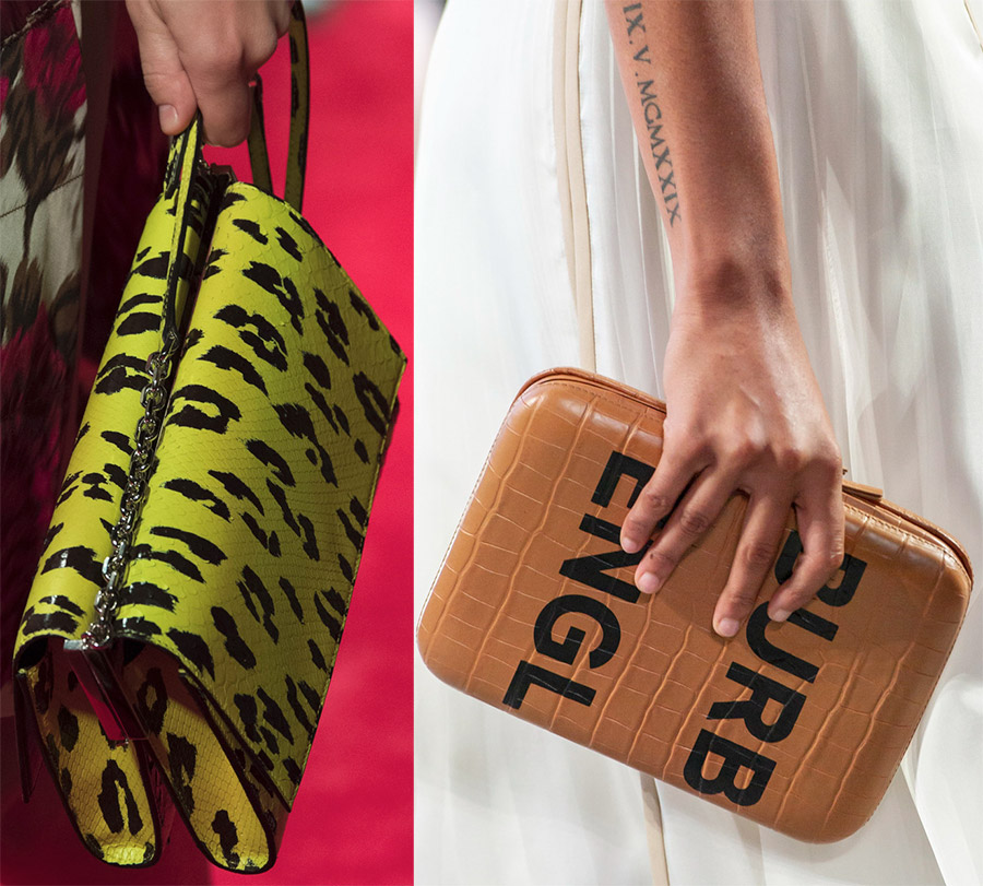 La tendance pour le texte et les noms de marque sur les vêtements continue d'évoluer et de se déplacer vers les accessoires. De nombreuses marques décoraient les sacs avec leur nom, mais maintenant il y a plus de textes, et ils peuvent véhiculer un message d'information plus complexe.