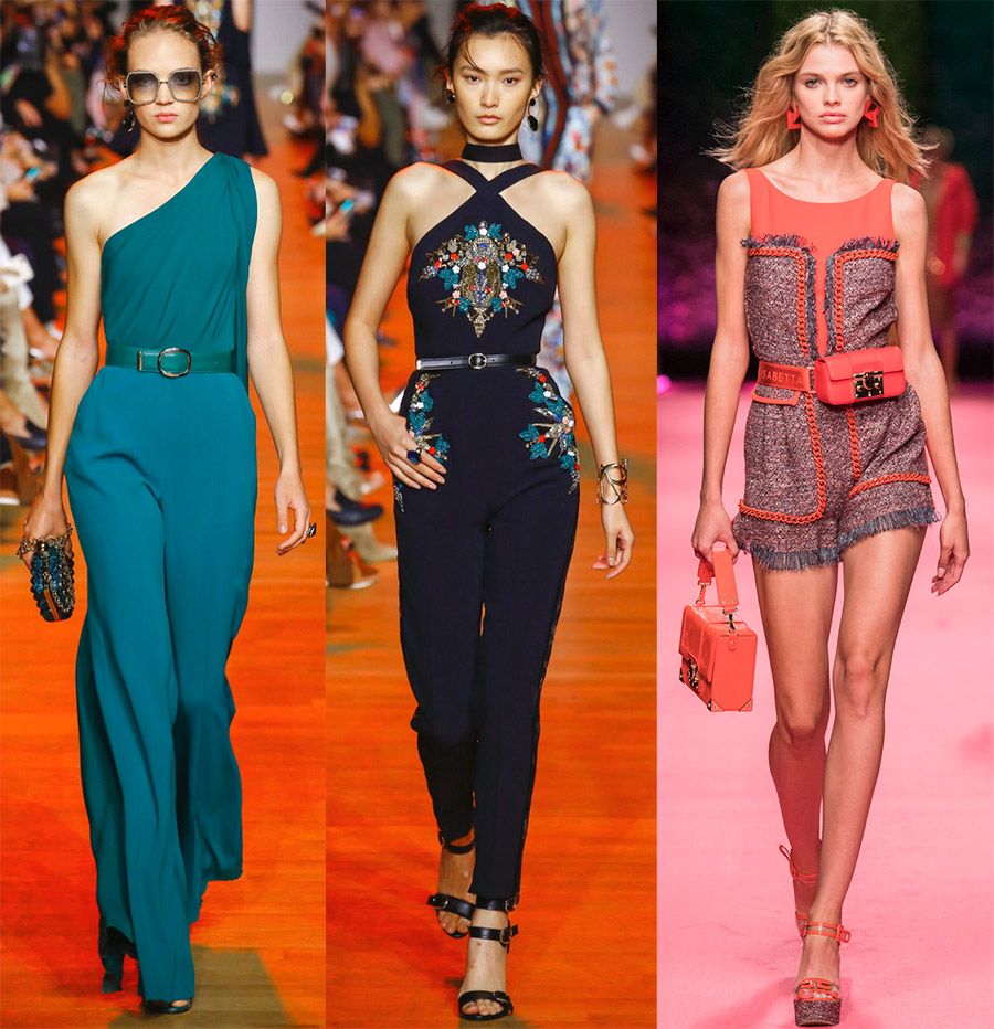 Tout le monde connaît déjà la couleur principale de cette année - c'est le corail, mais si nous parlons de salopettes de la saison chaude, il y a beaucoup plus d'autres nuances dans les collections. Les modèles aux couleurs militaires et safari, les tons pastel et les couleurs vives sont pertinents. La couleur la plus dominante est le blanc dans différentes nuances.