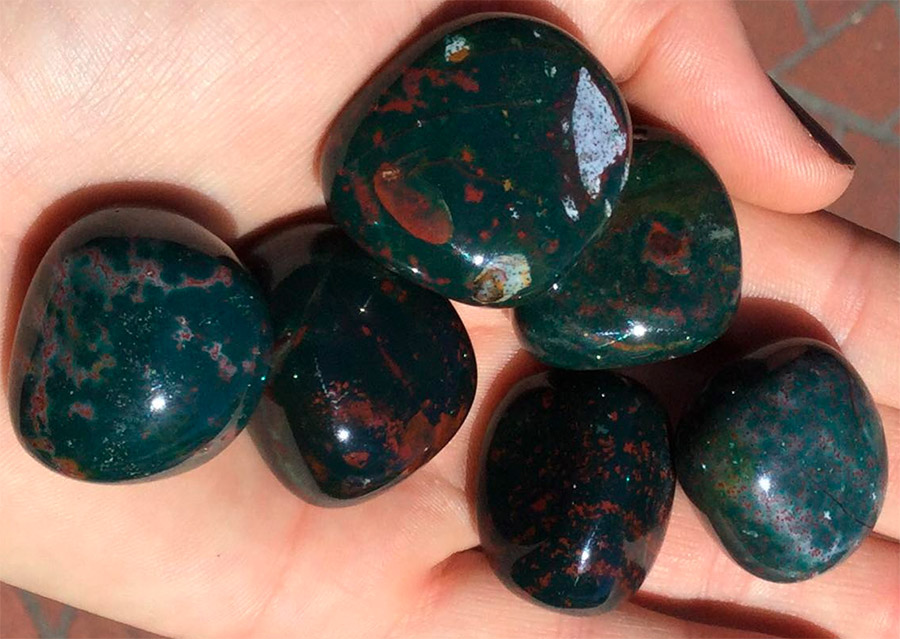 L'héliotrope est également appelé pierre de sang pour les taches rouges sur sa surface vert foncé. Dans certains pays, une telle pierre est appelée pierre d'Etienne, ou pierre du Christ. Les deux noms sont associés au sang - dans le premier cas, le premier martyr Etienne, et dans le second, le Christ Sauveur.