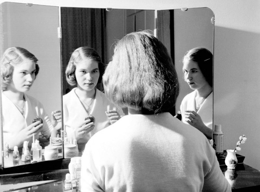 stylenow.techinfus.com choisi des photos vintage où les filles et les femmes se lissent près des miroirs. Les photographies ont été prises entre 1940 et 1960.