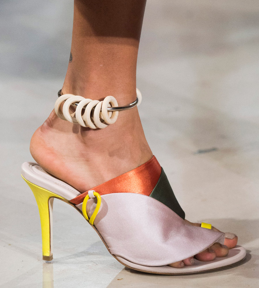 1. De fines chaînes en or combinées non seulement avec des sandales brillantes, mais aussi avec des bateaux classiques gracieux peuvent être utilisées comme bracelet de cheville. Et pas toujours en combinaison, parfois les bracelets de cheville sont indissociables des chaussures et en font partie, ce qui remplace la sangle de cheville.