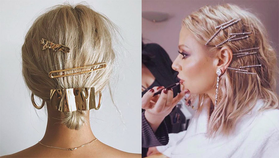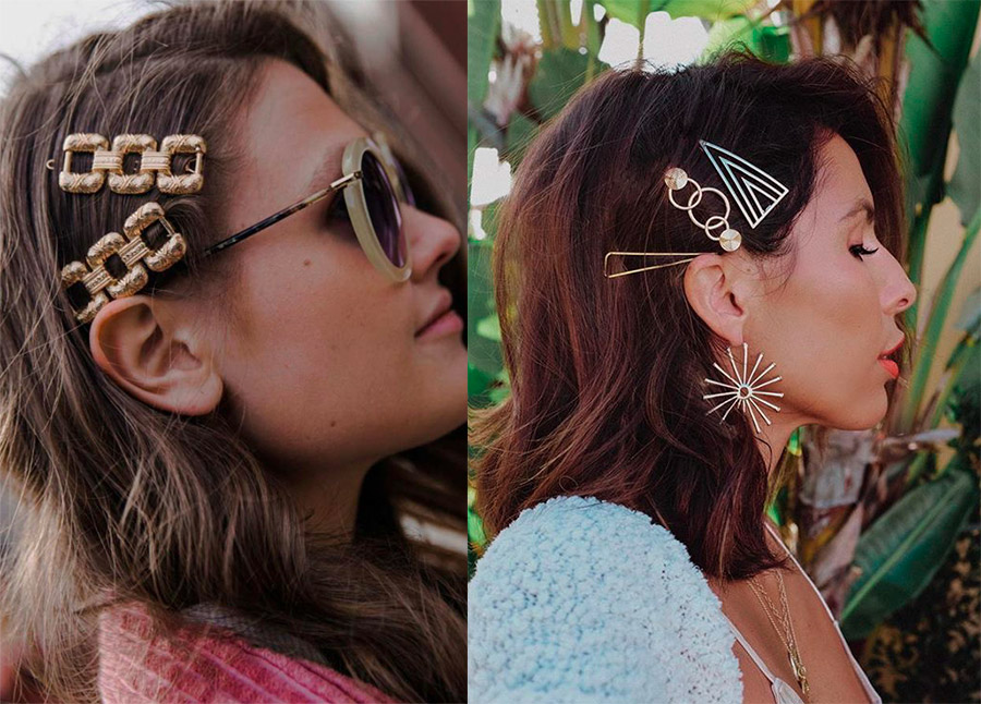 Pour ceux qui en ont déjà marre des perles, les créateurs proposent des épingles à cheveux géométriques très tendance faites de divers matériaux.