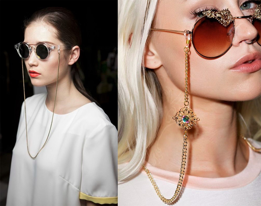 S'il y a quelques années, les lunettes sur chaîne étaient associées à un "accessoire de grand-mère", elles sont aujourd'hui portées par les femmes les plus importantes de la mode, en outre, se combinant avec n'importe quel article de garde-robe: avec un jean associé à un haut ou à un T- chemise, avec une robe combinée, avec un costume et même avec la tendance claire de tout le monde - les vélos. Et bien sûr, les lunettes sur la chaîne seront utiles sur la plage.