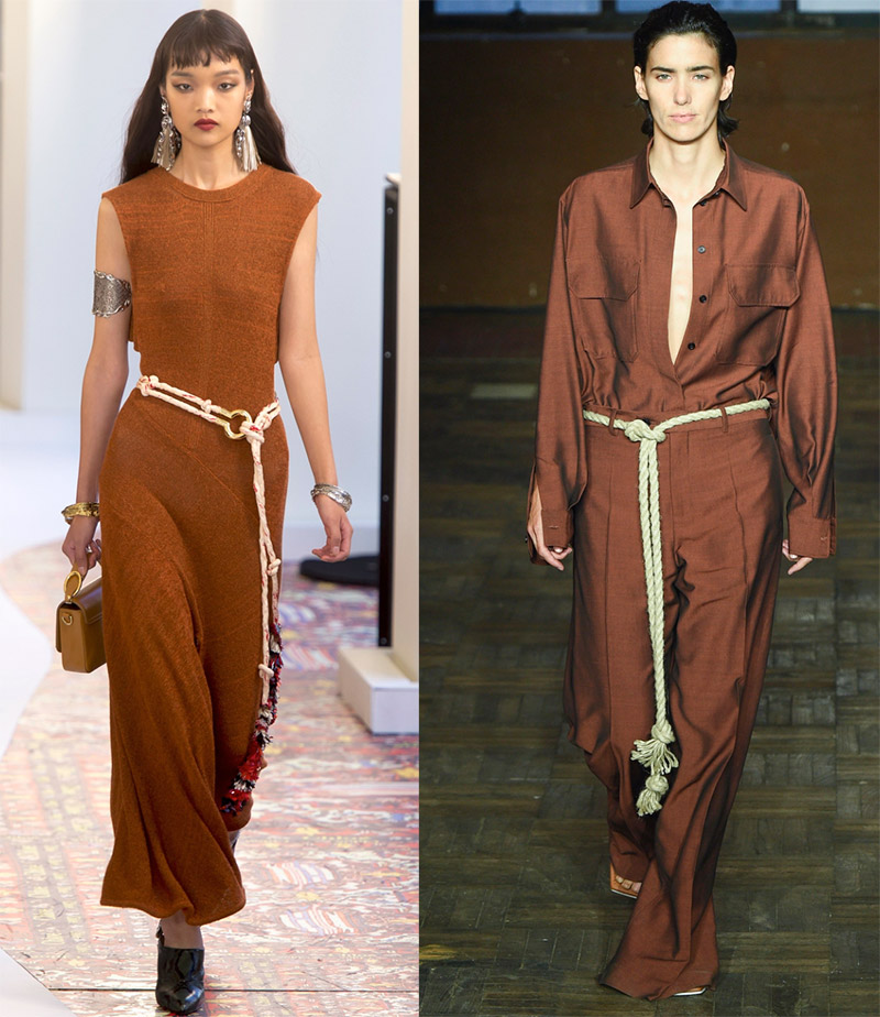 Les ceintures textiles ont longtemps occupé leur niche, mais cette saison, vous pouvez voir des looks à la mode avec des cordes. C'est à vous de décider s'il est judicieux d'acheter une ceinture en corde d'une marque de mode ou de faire preuve de créativité. Vous pouvez acheter une belle corde pour de l'argent symbolique, faire des nœuds, faire des brosses et vous obtiendrez une ceinture à la mode à la main.