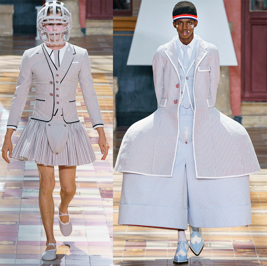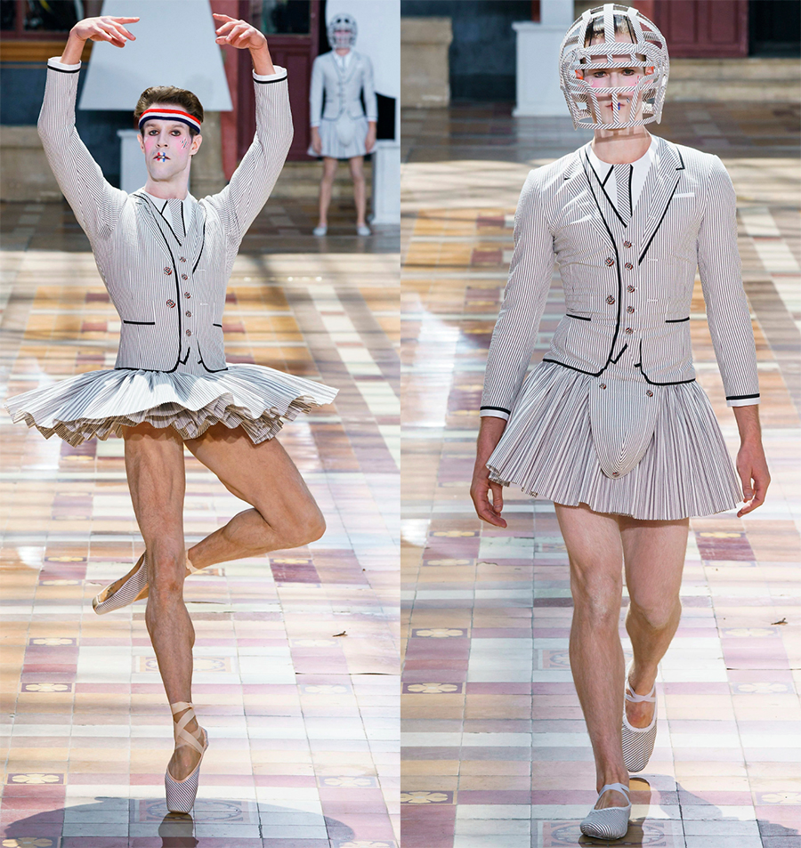 Thom BrownePour la plupart des hommes, cette mode peut sembler sauvage, mais très peu d'années s'écouleront et de telles tenues trouveront une place dans la garde-robe masculine, car les créateurs étudient les humeurs et les désirs de la société. Beaucoup d'hommes modernes veulent non seulement emprunter des choses à la garde-robe des femmes, mais être mignons, doux et féminins. Par conséquent, une telle mode se développera et remplira les rues des grandes villes.