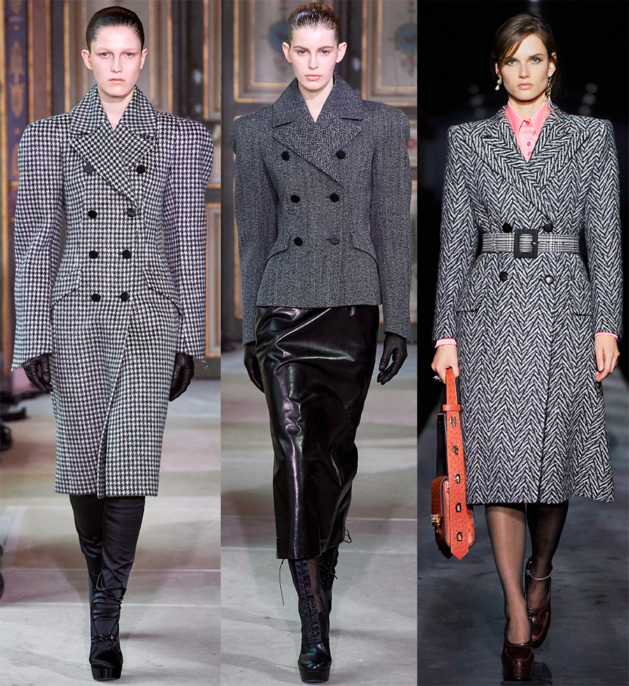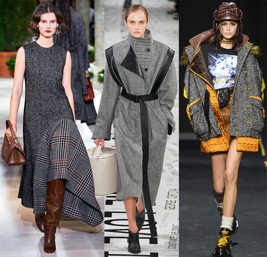 Une large sélection de modèles en tweed est proposée par les créateurs des collections Brock Collection, Dolce & Gabbana, Elisabetta Franchi, Givenchy, Miu Miu, Mulberry, Olivier Theyskens, Oscar de la Renta, Sacai, Stella McCartney, Versace, Victoria Beckham, et bien sûr, Chanel.