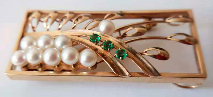 Envie d'un vrai bijou ? Ensuite, nous allons à la bijouterie pour acheter une broche en or avec des perles de Mikimoto. Une telle décoration n'est pas soumise au temps et sera héritée par les filles et les petites-filles.