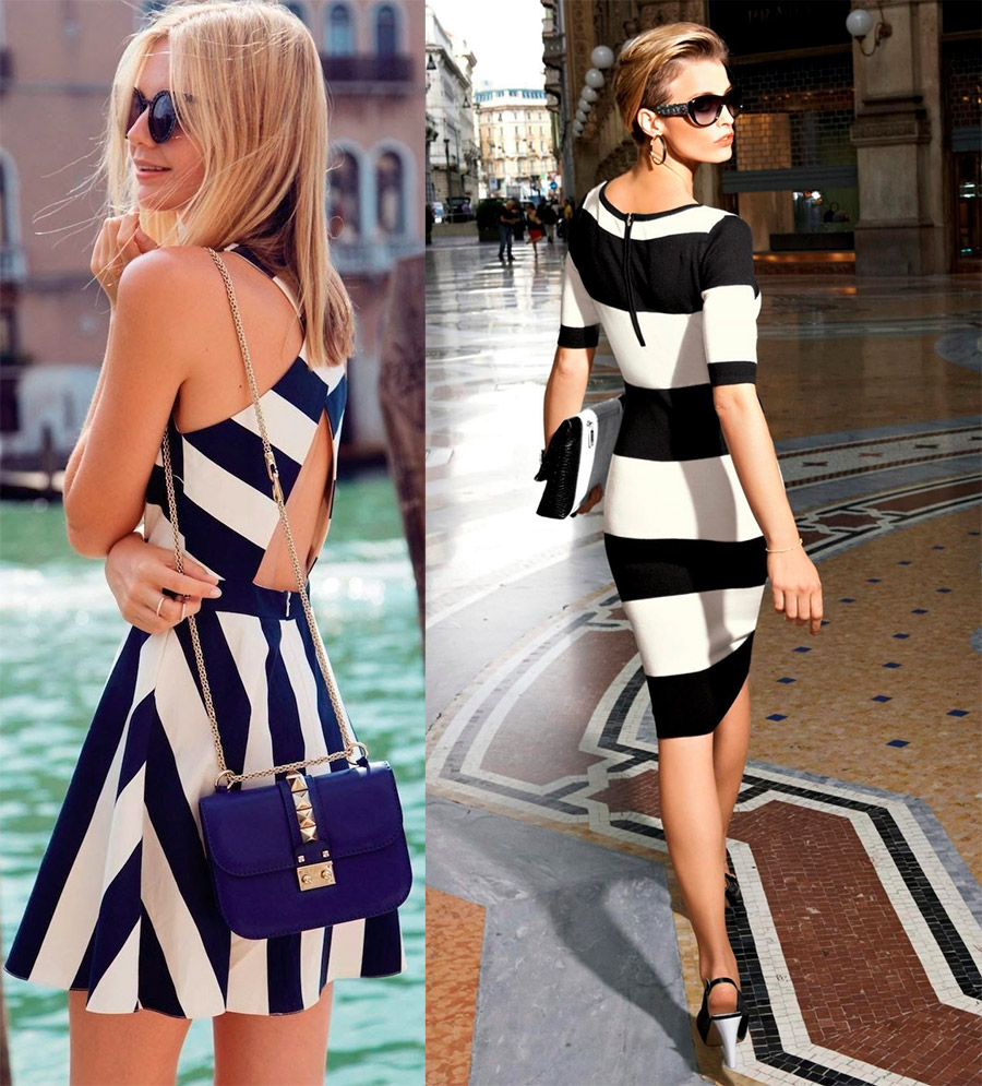 Si vous vous approchez plus prudemment, il est préférable d'utiliser deux couleurs dans l'image, tout en combinant correctement l'imprimé rayé avec des vêtements unis.