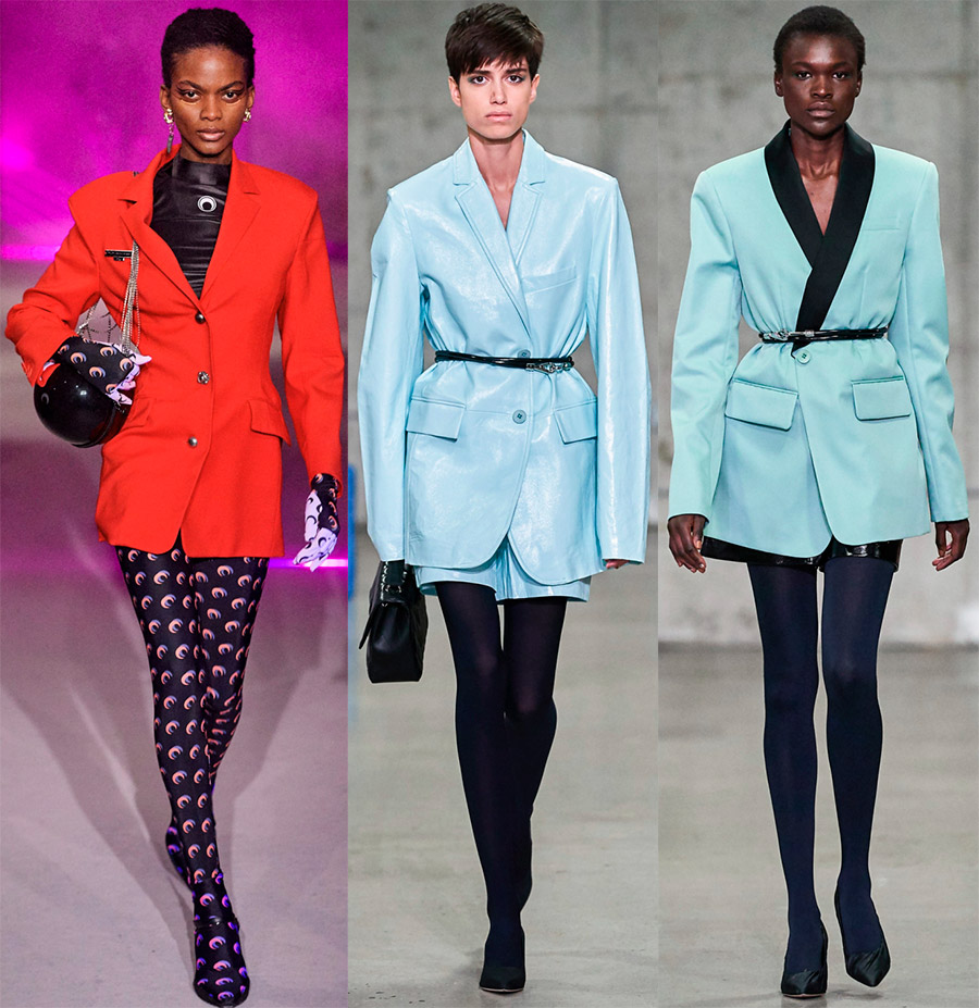 Les créateurs proposent différents styles et toutes les couleurs de l'arc-en-ciel. La coupe de la veste peut être cintrée, semi-ajustée ou droite. Mais il y a aussi des détails qui peuvent différer selon les différents modèles de la même coupe. Ce sont la longueur, la forme des revers et du col, l'emplacement des poches, le décor, etc.