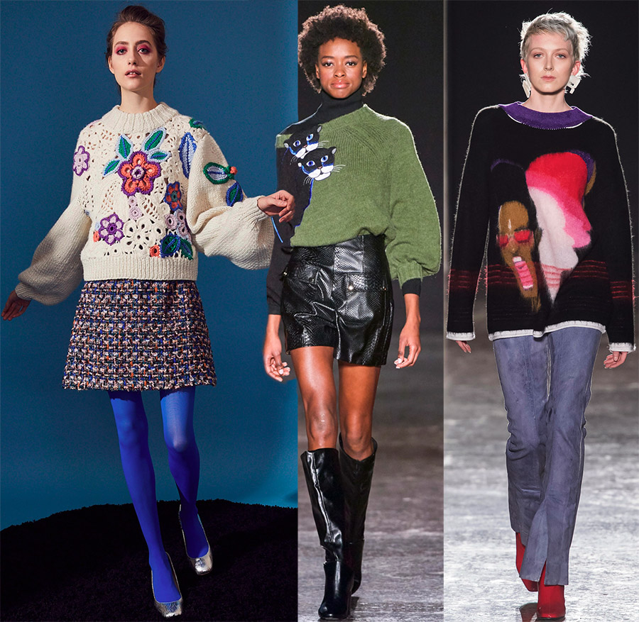 Quelle est la particularité de la déco des pulls de la nouvelle saison ? Les pulls et pulls sont réalisés avec de la broderie, selon la technique de l'intarsia, lorsque des peintures entières, des paysages, des portraits et divers personnages de dessins animés et de bandes dessinées apparaissent sur la toile. Sur les pulls on peut voir des fleurs dans la technique de la dentelle irlandaise, du patchwork tricoté, il y a aussi des produits dans la technique de la brioche.