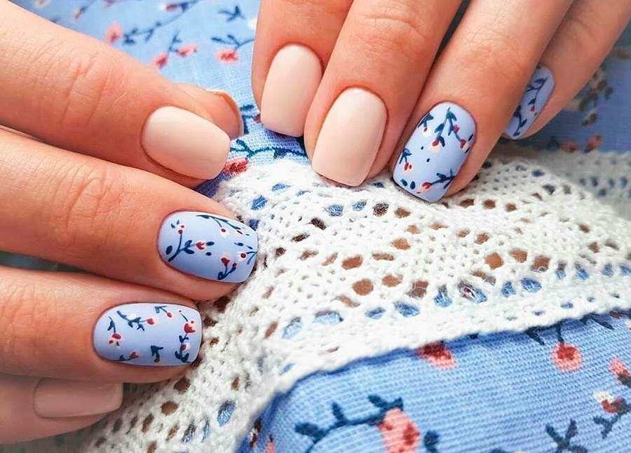 3. Nuances pastel. Rose, beige, bleu, menthe et autres ... Choisissez toutes les nuances de vernis pastel appropriées, l'essentiel est que la manucure soit en harmonie avec l'ensemble de l'image. Si vous voulez un peu de brillance, utilisez du vernis nacré ou des pastels
