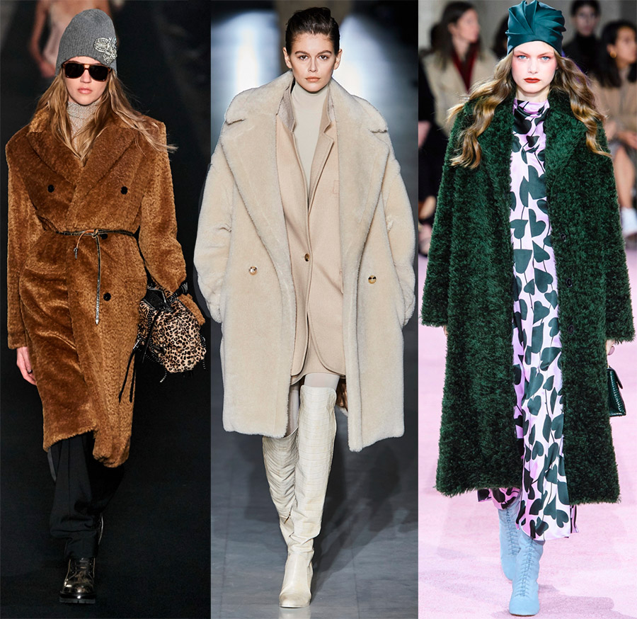 Les manteaux de fourrure seront également pertinents. Les options les plus courantes sont la fausse fourrure. La fausse peau de mouton et la fourrure brillante à poils longs sont particulièrement préférées par les concepteurs. Mais nous en parlerons séparément.