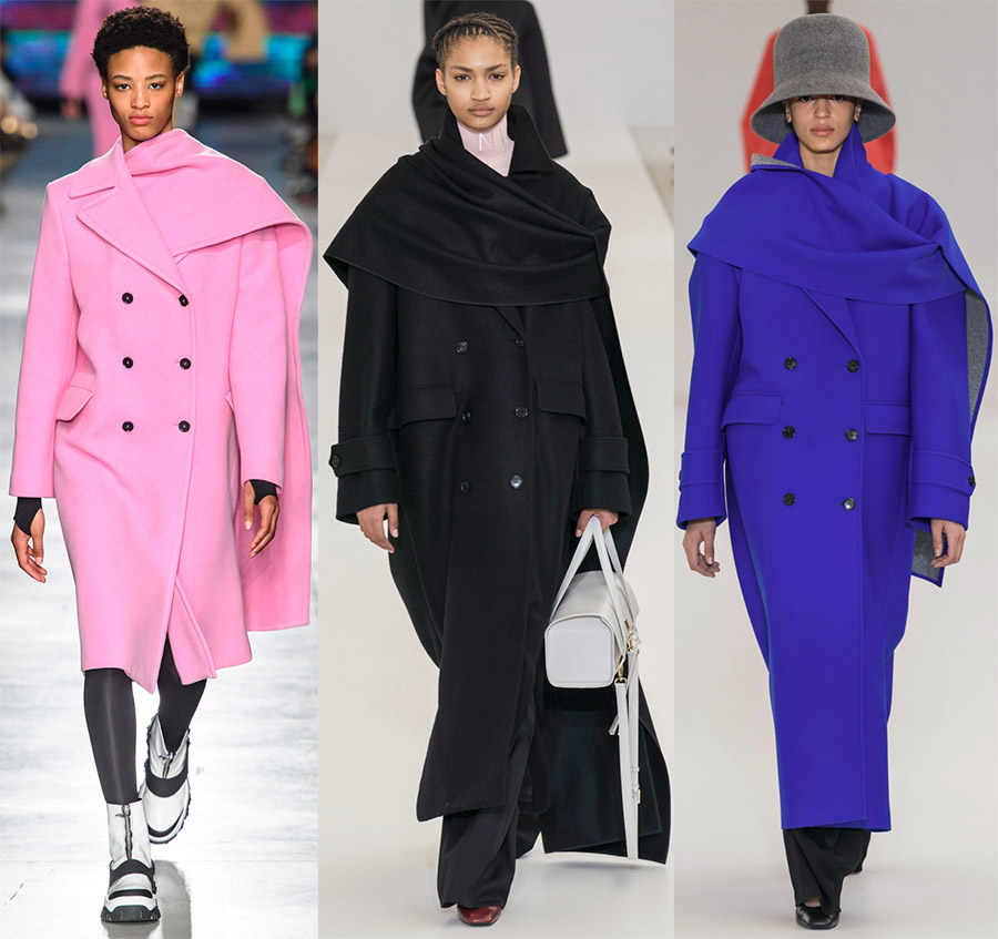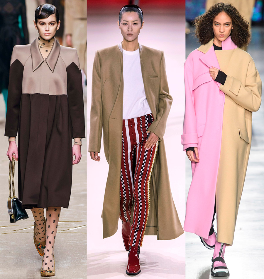 GivenchyLes manteaux de la collection Fendi et Eudon Choi ont le même élargissement des épaules, mais une silhouette droite stricte. Ils sont à double boutonnage ou à simple boutonnage. Les cols sont proposés sous forme de cols rabattus à larges revers ou en coupe châle.