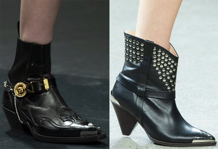 2. Bottines style cowboy. Ces modèles ont généralement des talons moyens et sont très confortables.Certains modèles peuvent avoir des éléments d'autres chaussures, par exemple, une bande élastique, comme des bottines chelsea. Il existe des modèles en peau de reptile et des options avec un décor riche.