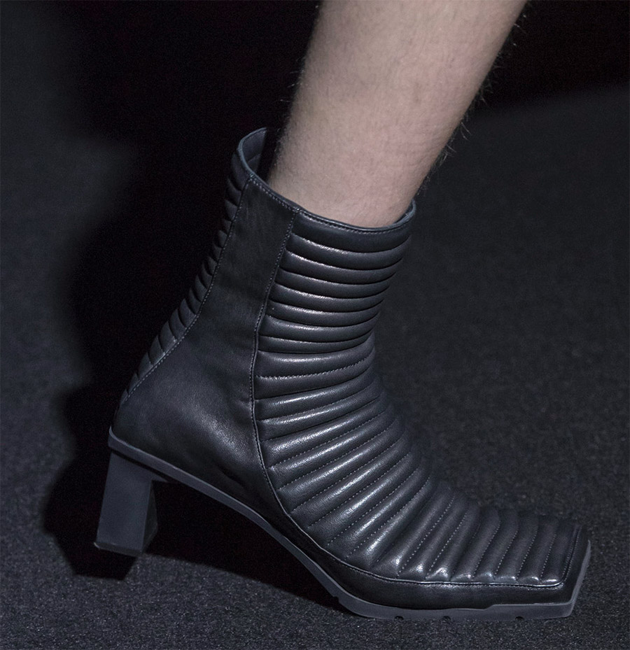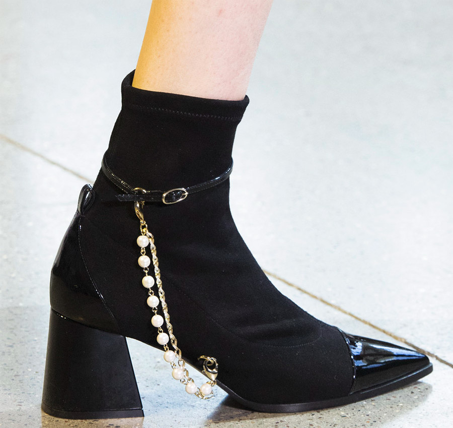 BlumarineChloé fait passer l'idée des chaussettes au niveau supérieur. Ici, nous voyons une paire de chaussures qui emprunte des éléments aux bottines Chelsea, mais l'insert tricoté est beaucoup plus grand. De telles bottines gagneront très probablement en popularité à l'avenir, car dans les chaussures de sport, les baskets en tricot sont appréciées de beaucoup. L'insert en tricot doux rend toute chaussure plus confortable et confortable, mais pendant la saison froide, ce n'est pas très pratique.