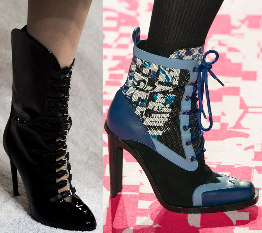 Modèles avec cristaux, broderies, dentelles et autres éléments décoratifs. Les modèles les plus luxueux se trouvent chez Balmain et Alexander McQueen. Aigner décore tout aussi bien ses chaussures, les bottines ont juste l'air plus sobres. En matière de qualité, Aigner propose des accessoires de la plus haute qualité.