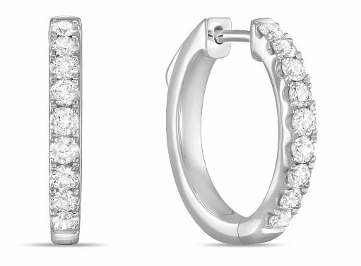 Boucles d'oreilles en or blanc avec pistes de diamants ronds sur rail. Collection Brilliance, MUS. Que donne-t-il : collier luxueux avec une grande émeraude et des diamants.