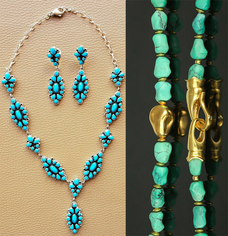 Souvent, des boucles d'oreilles ou des pendentifs turquoise étaient prescrits dans la recette des maladies, et peut-être simplement mettaient un caillou sous l'oreiller. De plus, les anciens guérisseurs nous ont laissé leurs notes sur la meilleure façon de porter la turquoise - dans un cadre en argent ou simplement un caillou, en pendentif ou en bague. Mais c'est déjà toute une histoire...