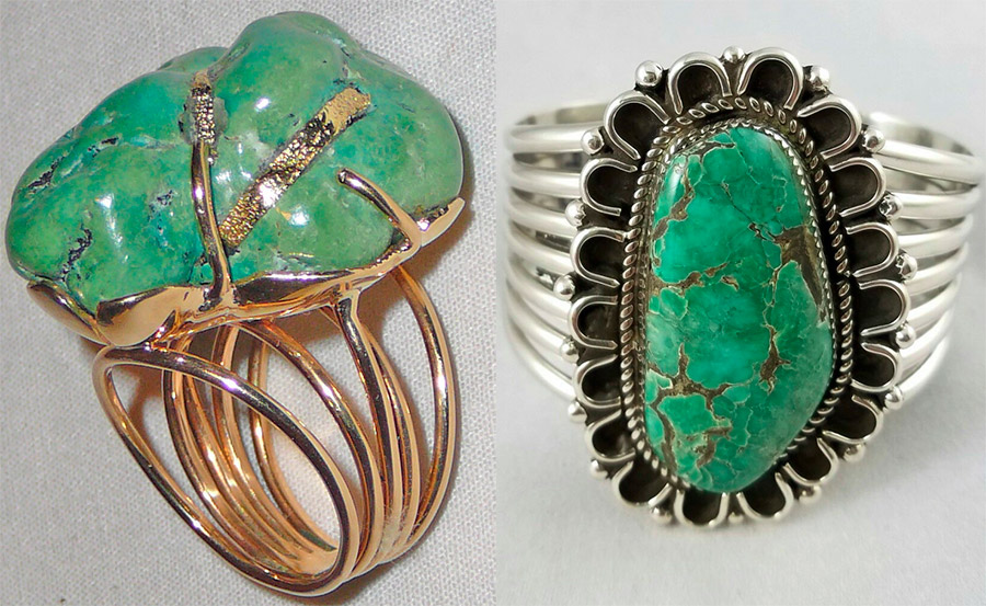 Le minéral est utilisé pour décorer bagues, boucles d'oreilles, bracelets, colliers, pendentifs, diadèmes et broches. De plus, les expositions du musée nous parleront de nombreux autres produits avec de la turquoise. Dans les temps anciens, ils aimaient décorer les poignées d'armes, d'armures, de vêtements, d'attributs de pouvoir. En Orient, la turquoise a trouvé sa place sur les narguilés, les récipients, les tasses, les coffrets, etc. La turquoise était également utilisée dans la création de produits d'art sculptés, pour les incrustations sur le métal et le bois et dans la création de mosaïques.