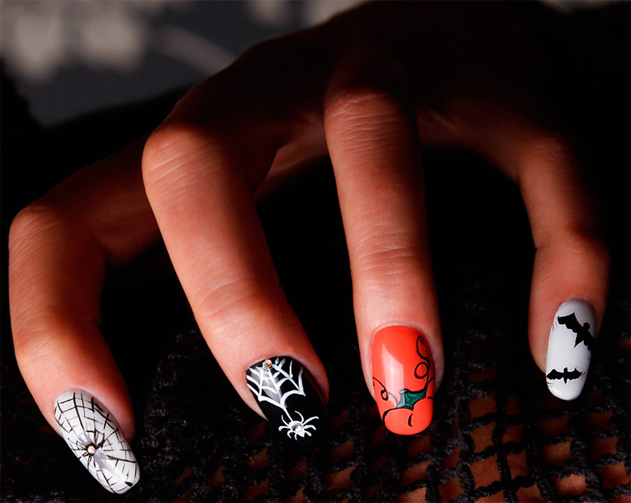 La fête d'Halloween nous offre la possibilité de mener différentes expériences avec l'image, d'essayer la tenue d'une princesse médiévale, de se maquiller à la manière d'une comtesse sanglante et de se peindre les ongles à la manière des vacances. Il existe de nombreuses options pour la conception des ongles. Aujourd'hui nous allons rappeler les principes de base et voir des ready-made