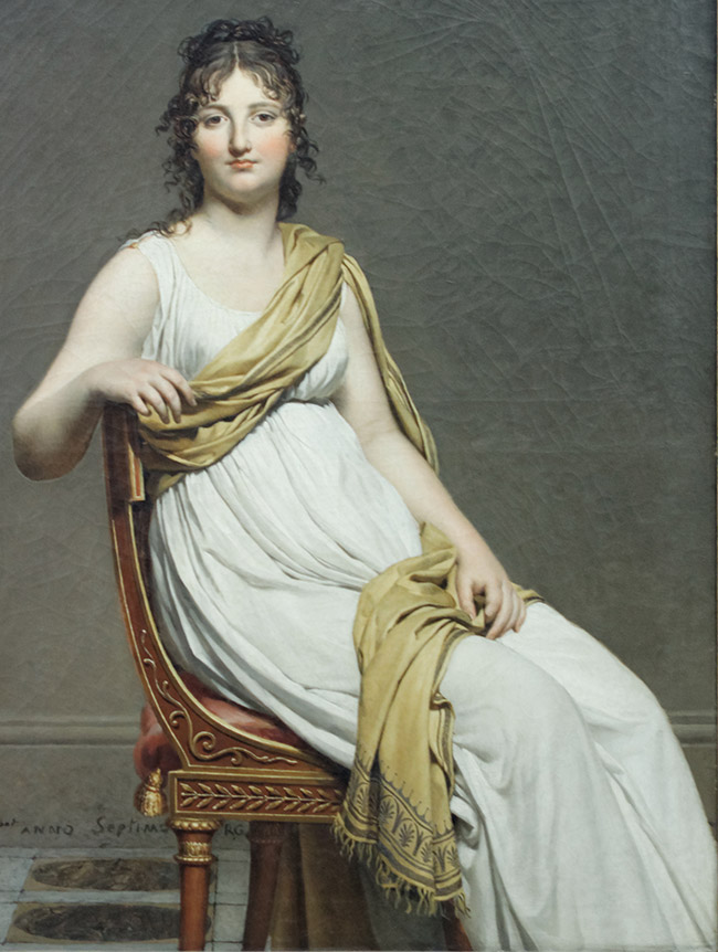 Les dames s'efforçaient de ressembler aux déesses grecques, qu'elles admiraient à travers la contemplation de la peinture et de la sculpture, ainsi que dans leur imagination en lisant de la poésie. Les beautés de Paris recherchaient une extraordinaire blancheur de leur peau, leur donnant une ressemblance avec les statues grecques en marbre. A cette époque, Madame Récamier, Madame Talien et Joséphine Beauharnais devinrent l'incarnation idéale de l'étendard de la beauté.