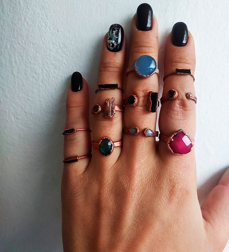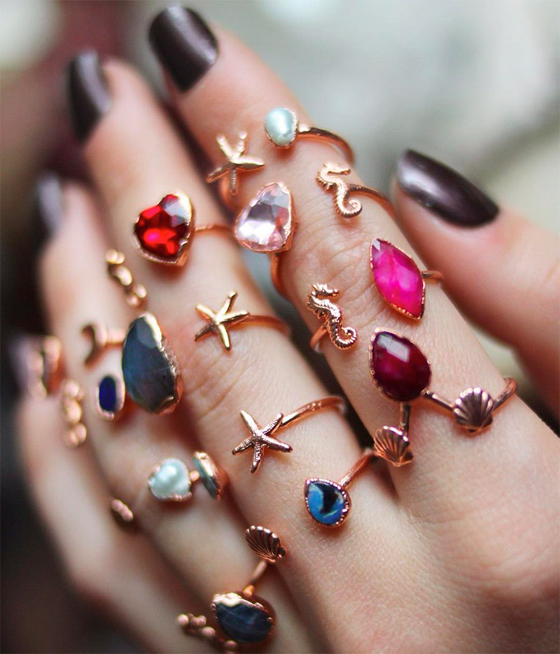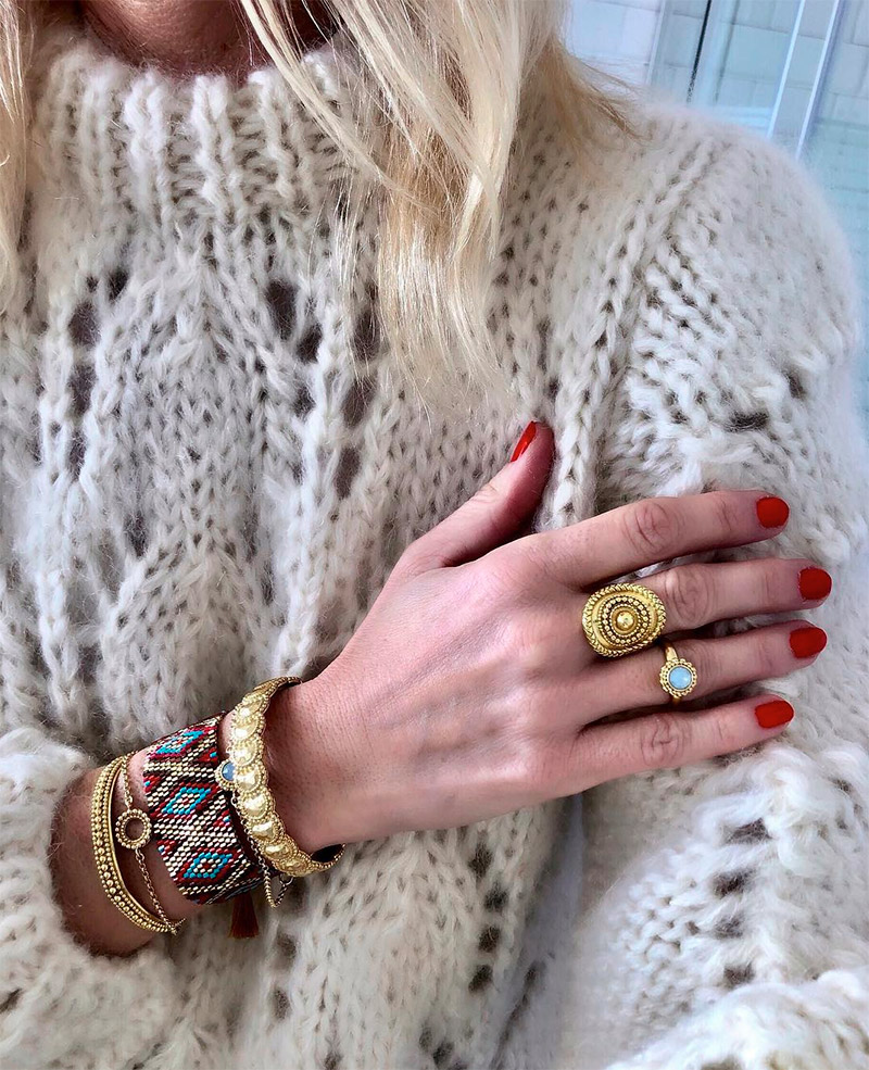 Les principaux matériaux du design classique sont l'argent, le cuivre et le bronze, mais l'or et le platine ne seront pas non plus superflus, surtout si ces bagues sont composées de grosses pierres naturelles. Les beautés bohèmes adorent les pierres naturelles dans les bagues, les bracelets et les colliers. Seulement aujourd'hui, nos amis asiatiques réussissent si bien à créer des pierres artificielles que vous ne pouvez pas trop forcer. De beaux bijoux faits de pierres d'imitation viendront également compléter notre look.