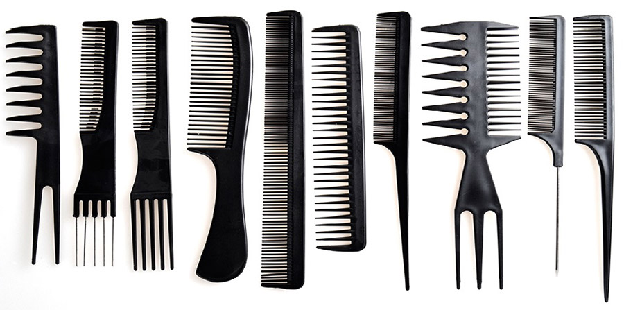 Par exemple, pour les cheveux fins et courts, un peigne plat à dents clairsemées ou une brosse à poils naturels convient, pour les cheveux épais et longs - des brosses dont les poils sont de tailles différentes et les dents clairsemées.