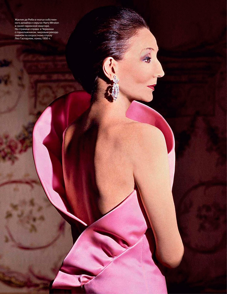 La comtesse Jacqueline de Ribe aimait être photographiée pour les magazines de mode. Et s'habiller modestement en semaine, le soir lors d'événements sociaux, c'était un grand plaisir pour elle d'impressionner lorsqu'elle se présentait au bal. Mais ce n'était pas la vanité qu'éprouvent les beautés ordinaires, tuant le temps et dilapidant la fortune familiale. C'était un sentiment de plaisir du designer dans le travail accompli, et les regards admiratifs étaient une récompense pour l'art et l'artisanat.