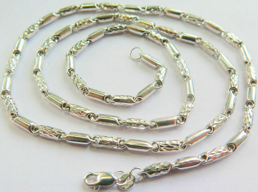 Et aussi l'argent a toujours été apprécié en Russie. Métal blanc, pur et beau, comme la personnification de l'hiver russe enneigé. Les créateurs de bijoux offrent une variété d'options pour le traitement des chaînes en argent. Par exemple, le rhodiage, qui donne brillance, oxydation, noircissement, gravure. Prendre soin de telles chaînes sera beaucoup plus facile.